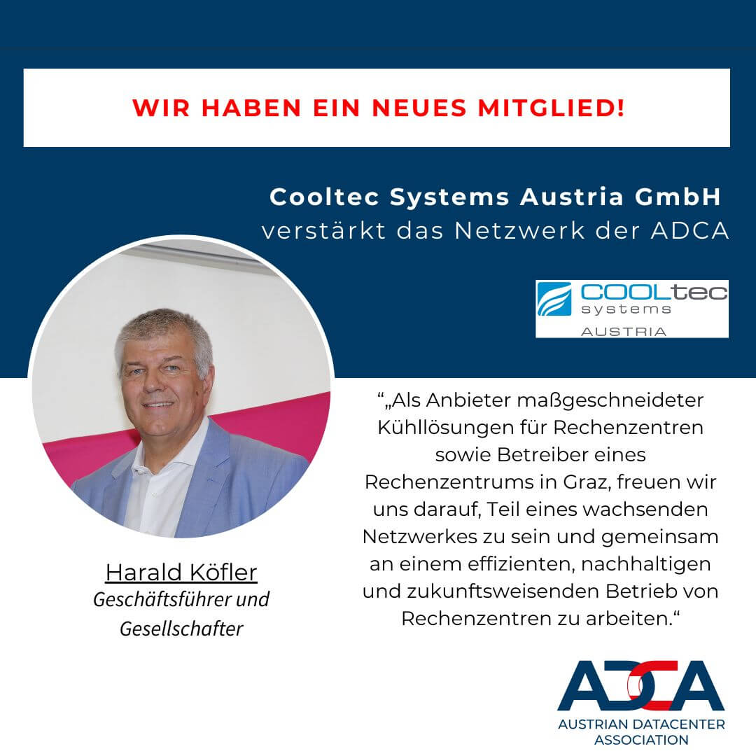 Willkommen COOLtec Systems GmbH! Mit COOLtec Systems GmbH erweitert sich das Netzwerk der Austrian Data Center Association um einen Rechenzentrums-Betreiber sowie